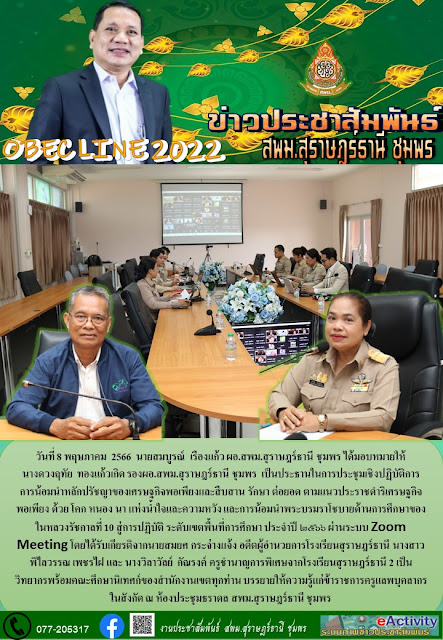 เชิญร่วมกิจกรรมกับสพม.สุราษฎร์ธานี ชุมพร การน้อมนำหลักปรัชญาของเศรษฐกิจพอเพียงสู่การปฏิบัติ 08.05.2566